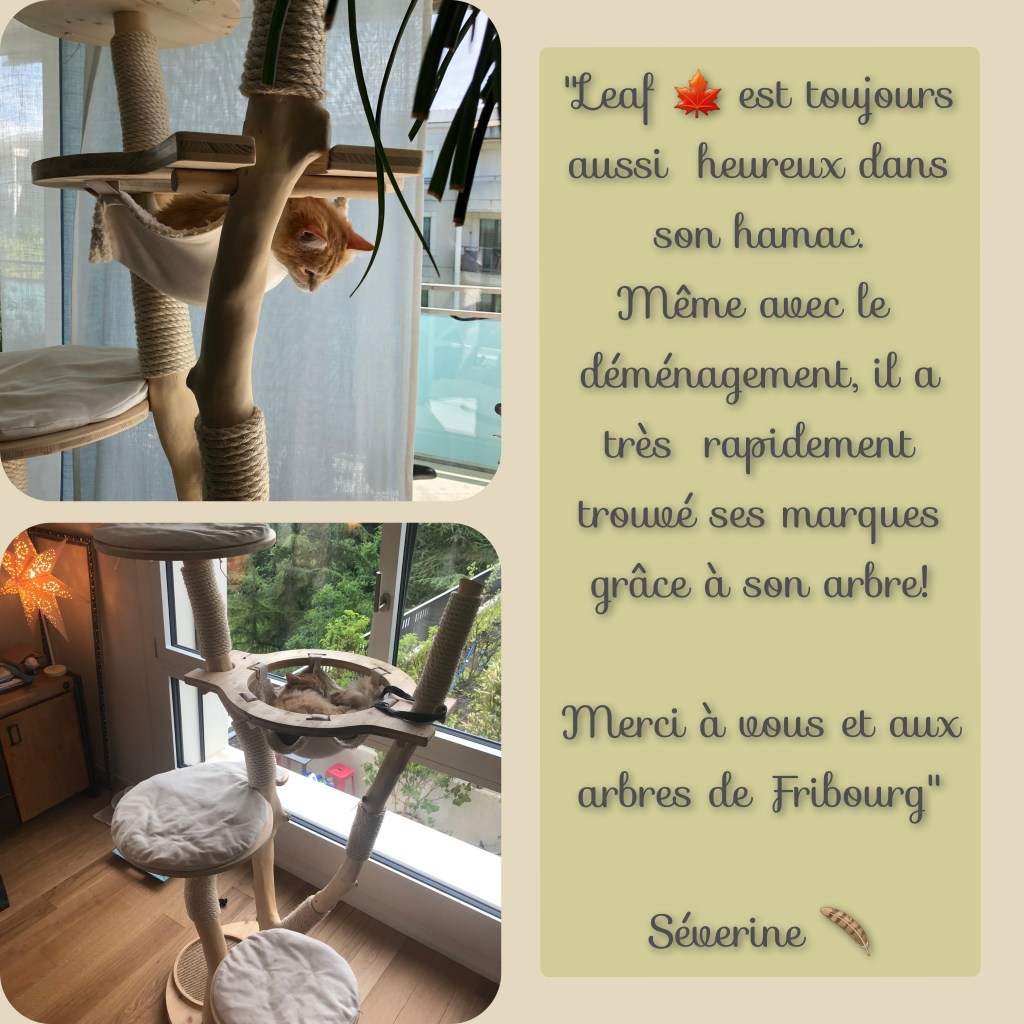 Des arbres à chat en bois massif, principalement du hêtre, qui provient de nos forêts fribourgeoises.