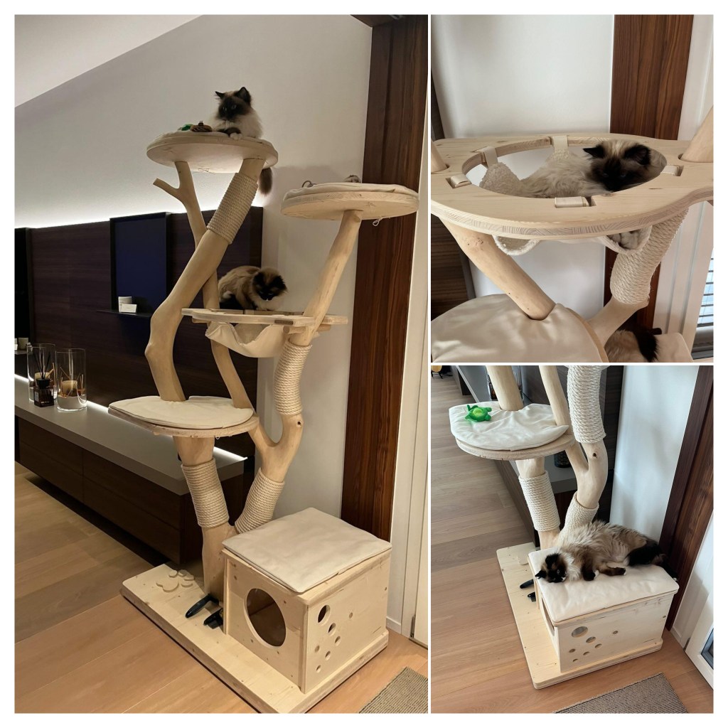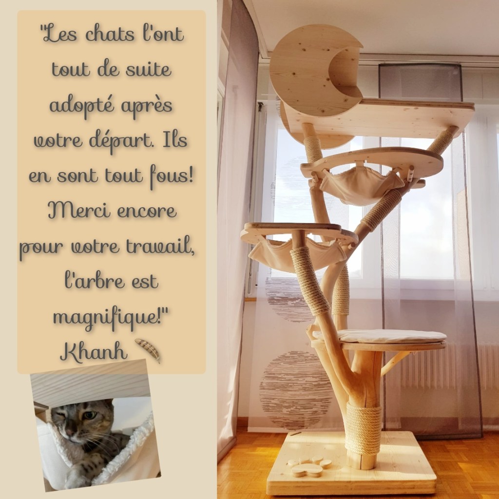 L’étude de votre projet commence par la sélection des troncs, écorcés puis poncés, jusqu’à la confection des coussins. Nous donnons une nouvelle utilité à ces troncs et les recyclons pour qu’ils deviennent de beaux arbres à chats, uniques et contemporains.