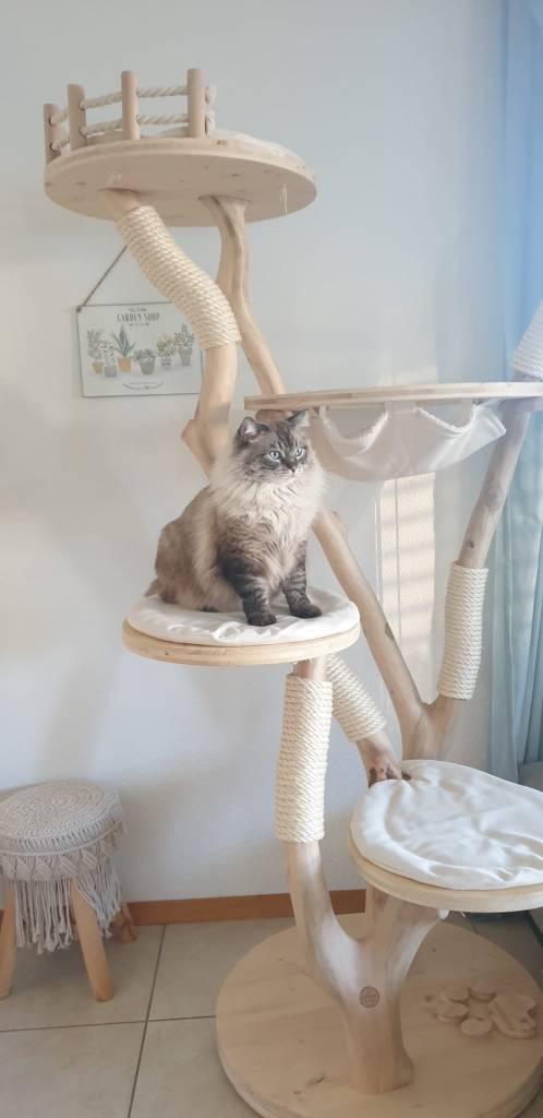 Vous avez le choix entre un arbre de notre gamme non personnalisée et un arbre de notre gamme sur mesure. En réalité, toutes nos créations sont uniques et sur mesure. Mais si les dimensions requises, par souci de confort optimal pour ton compagnon, sont manquantes et imposent une construction complexe, le travail n’est pas le même. Il s’agit alors d’un arbre sur mesure.
